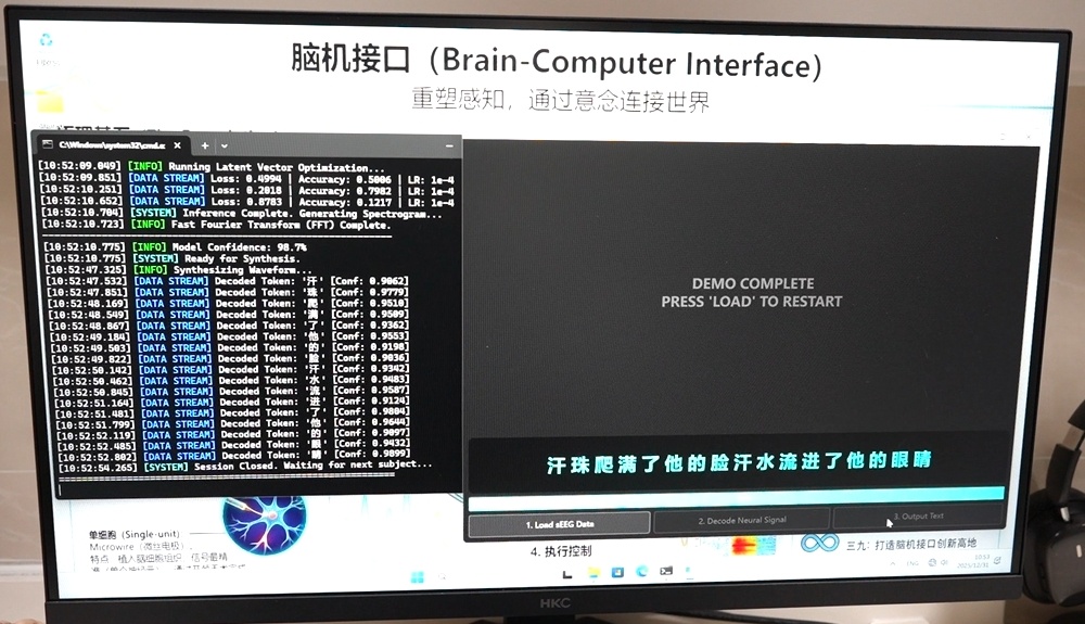 在该院癫痫中心,另一项脑机接口技术的应用同样令人瞩目:电子屏幕上,一个个汉字随着患者的脑电信号通过解码后逐渐显现,这是脑机接口技术在将受试者的脑信号进行语言解码。