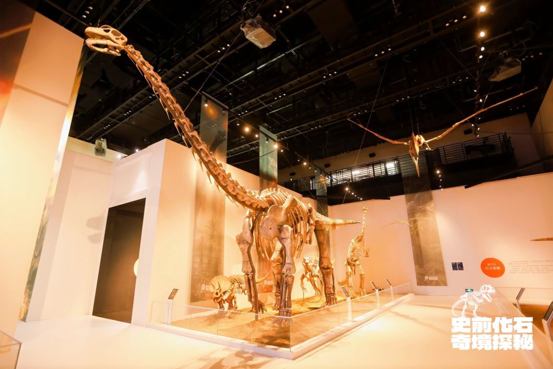 “巨龙天演”突破传统展览的单一陈列模式,创新融合珍稀化石标本展示、研学互动、音乐演出及VR体验等多元形态。将 26 亿年生命演化史浓缩于近2000平米空间,还原恐龙 “相爱、孕育、狩猎、覆灭” 的史前生命瞬间,让观众在移步观展中直观感受地球生命演化的磅礴历程。
