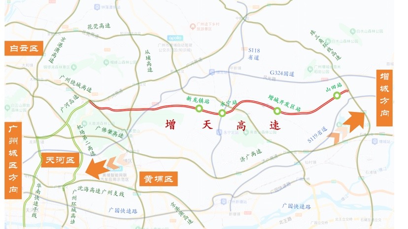 2025年12月31日上午10时,由广州交投集团建设的广州增城至佛山高速公路(增城至天河段)(简称增天高速)建成通车。