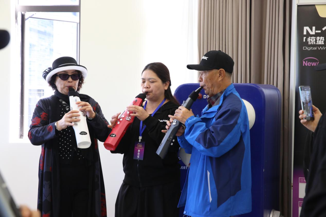 现在关注的亮点之一是健康监测功能。产品经理陈镇冲演示了惊蛰N-1PRO如何实时监测演奏者的呼吸节奏、肺活量数据,并提供科学训练建议,助力演奏者实现可持续的音乐创作。