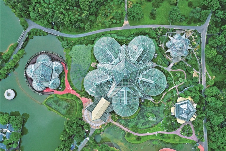 华南国家植物园的世界植物温室群景区像盛开的“木棉花”。