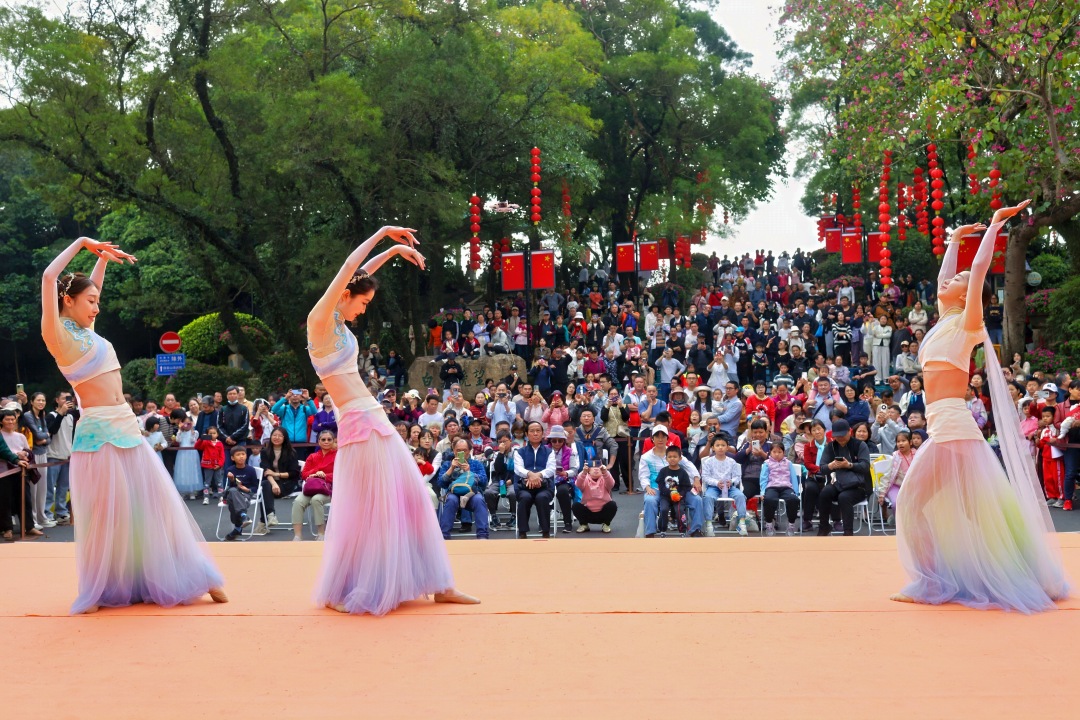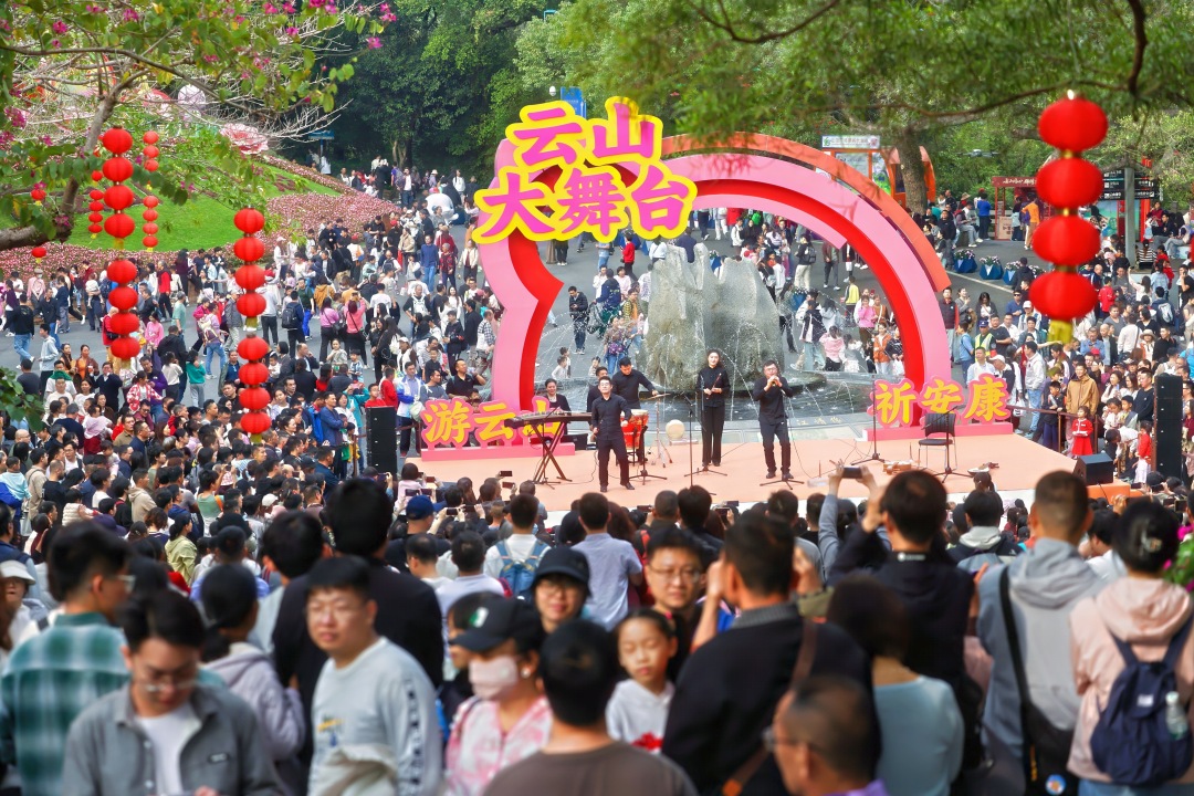 元旦当天,山顶广场客流涌动,既有携老扶幼的亲子家庭,也有热衷新鲜体验的年轻群体。部分游客席地而坐,不时跟随旋律哼唱,用镜头记录精彩瞬间,周边休憩区、观景台也聚集了大批驻足聆听的市民。带老人、孩子来的市民陈女士说:“平时难得在自然风光里看专业演出,老人听着经典民乐很开心,孩子也对舞蹈节目特别感兴趣,一举两得。”年轻游客小李则表示:“这种在山林间的沉浸式体验,比去剧场更有氛围感。”