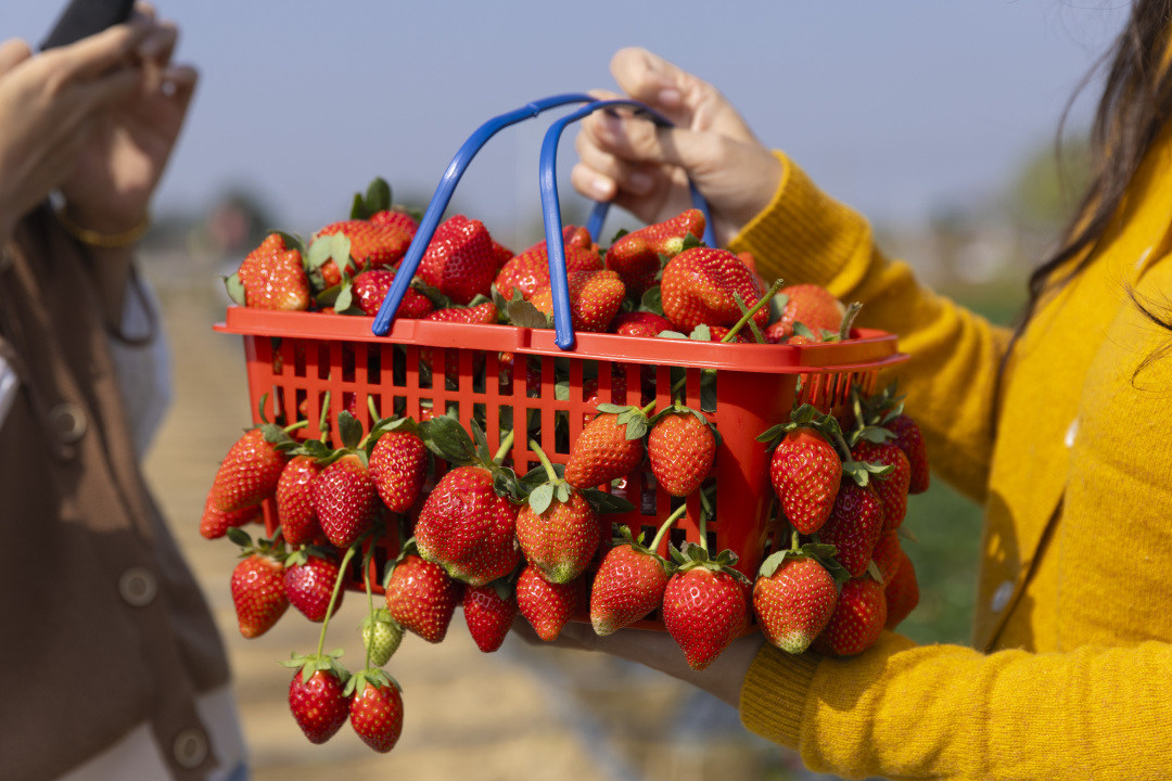 受2025年秋季气温偏高影响,草莓花芽分化推迟,整体上市时间较往年延后约半个月。不过,随着2025年12月中下旬气温回落,果实糖分积累充分,品质稳定,产量也与2024年基本持平。该基地负责人上官先生表示,“头茬果”果实最大,味道最甜,2026年的元旦假期恰好在最佳风味期,而采摘期将持续至今年3-4月。