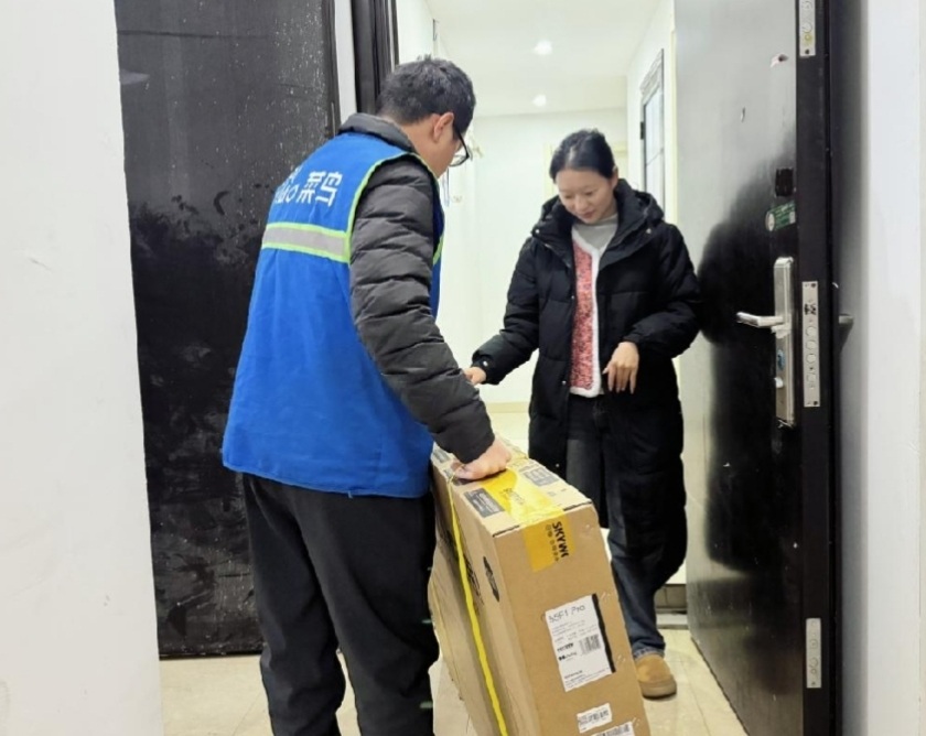 1月1日上午8时30分许,杭州的鲁女士收到了由菜鸟供应链发货送达的电视,成为今年全国第一位在天猫享受国补的消费者。