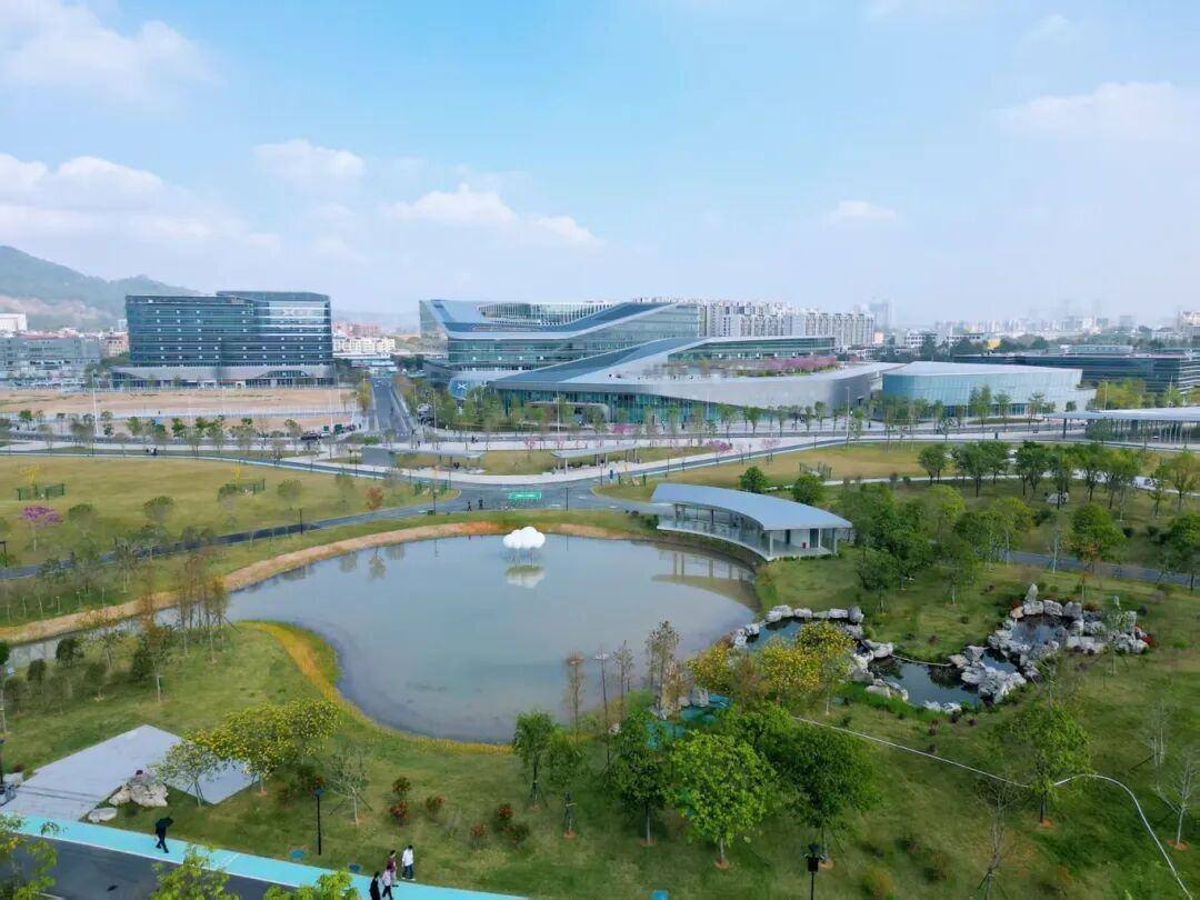 在天河区,科韵公园(一期)1日也正式开放。公园以“科技芯 无限环”为主体,主园路布局形似莫比乌斯环,成为融合科技景观与自然生态的城市“绿色芯片”。