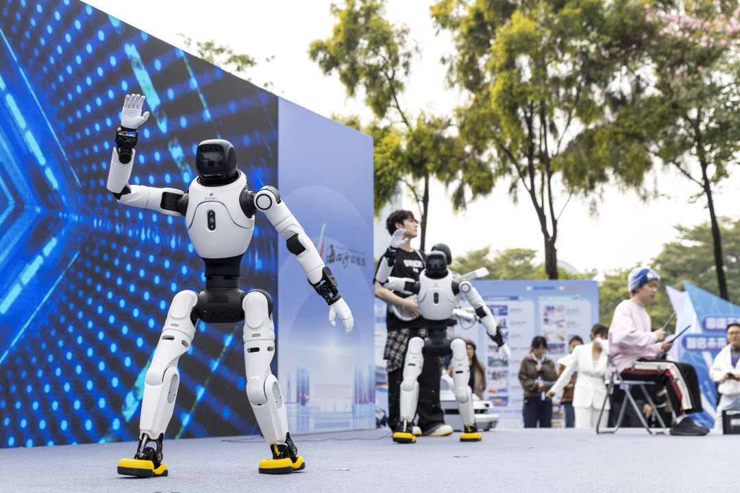 1月1日,海心沙科技岛·未来岛正式启航,海心沙全空间智能体验中心正式全面向公众开放。人形机器人伴随着欢快的音乐热舞,四足机器狗组团表演后空翻,在新年第一天体验“黑科技”,更有一番梦幻未来感。