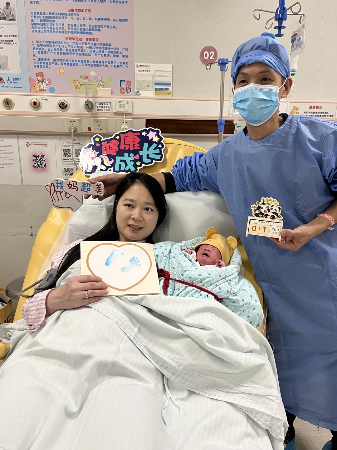 在广州市妇儿的增城院区,同样有一位预产期本来是1月19日的宝宝,于去年12月31日凌晨胎膜早破入院,最终在新年元旦凌晨出来。伴随着1月1日凌晨产房的时钟刚跳过零点,电子屏上的日期刷新成1月1日00:00,监护仪平稳的滴答声里,突然响起一声清亮的啼哭。”助产士丘曼把裹在柔软襁褓里的小家伙抱到妈妈身边:“恭喜呀,是咱们科室的第一个元旦宝宝,这将成为这个家庭最独特的元旦记忆。”