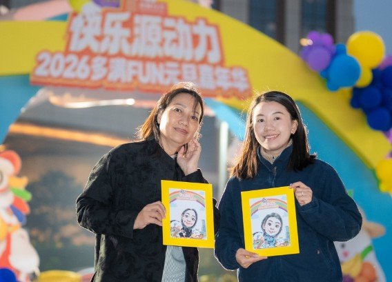 主办方以“快乐源动力·2026多满Fun”为主题,策划多款“源源”IP,通过融入不同文娱活动,精准满足不同年龄段市民的需求。舞台周边数十个特色摊位,文创手作、特色美食、潮流好物一应俱全;亲子手工区里,家长和孩子一同动手制作灯笼,充满着欢声笑语;趣味游戏区中,套圈、投壶等传统游戏趣味十足,大人小孩玩得不亦乐乎。璀璨的灯光与市民的欢声笑语交织在一起,勾勒出一幅热闹的跨年画卷。