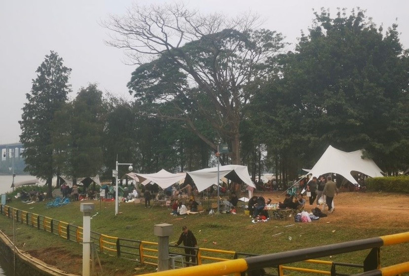 一直在梁明诚雕塑园从事露营设备出租服务的老林告诉记者,来这里露营的以家庭群体为主,粗略估计元旦当天应该有四五千人。
