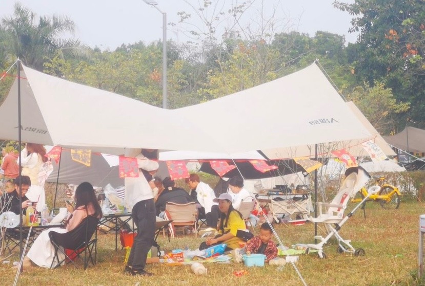 诚如阿玲所言,下午4点多钟,还有不少市民带着露营设备来到梁明诚雕塑园露营。
