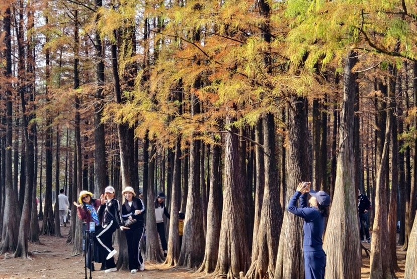 来自顺德的陈女士表示,自己近期常来拍摄落羽杉变色的过程,剪辑成小视频,“每次都有新发现,特别有趣”。来自钟村的梁叔则一边拍照,一边热心地为其他游客留影:“大家来这里,图的就是开心。”