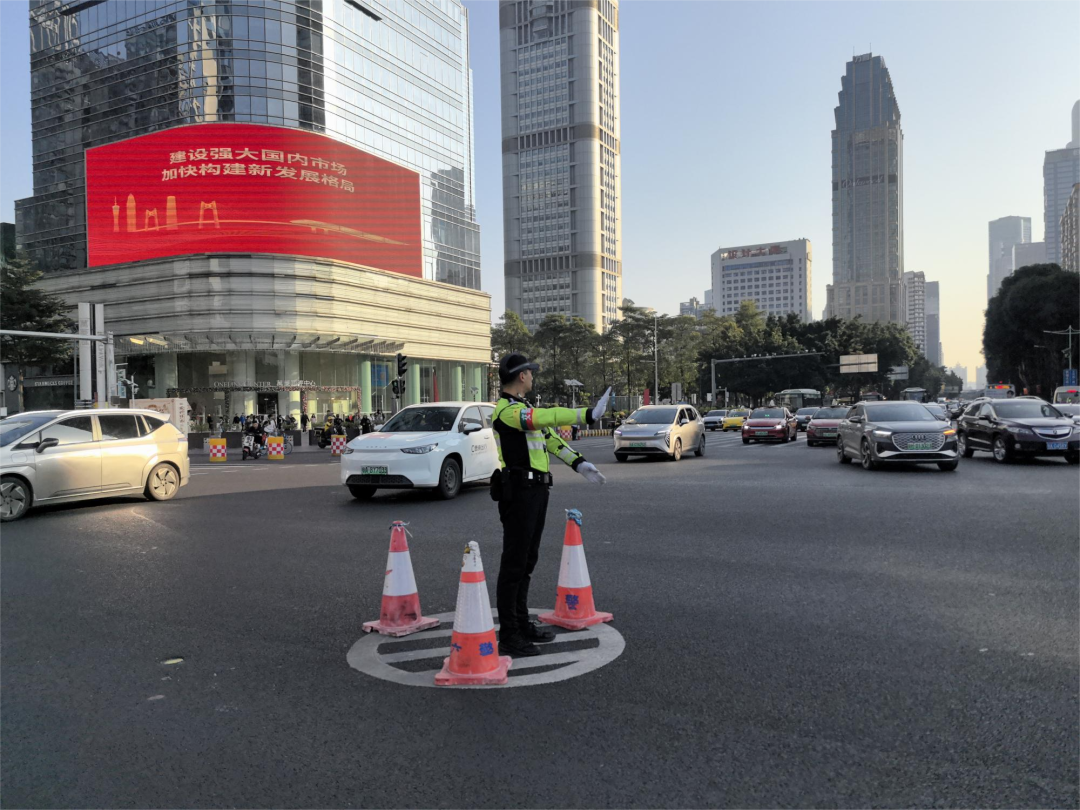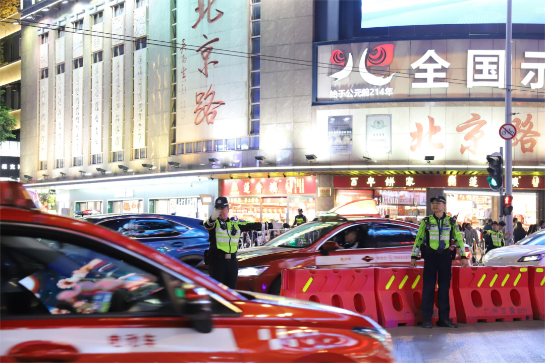 “节前,我们依托智慧交通平台预警,研判出传统商圈、旅游景点周边将面临超常交通压力,提前制定了跨区域支援预案。”交管部门介绍,羊城铁骑作为广州交警的“机动棋”,元旦期间日均投入警力200余名,分批次、有重点地部署至交通压力突出区域,实现警力资源的精准投放与高效调度。
