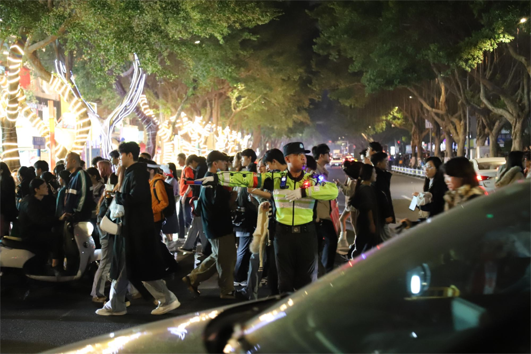 针对北京路商圈夜间散场高峰,铁骑队员以特定队形结合水马设施,组成移动引导线,辅以灯光提示,安全引导逾10万名游客有序前往公交地铁站点,大幅提升疏散效率。