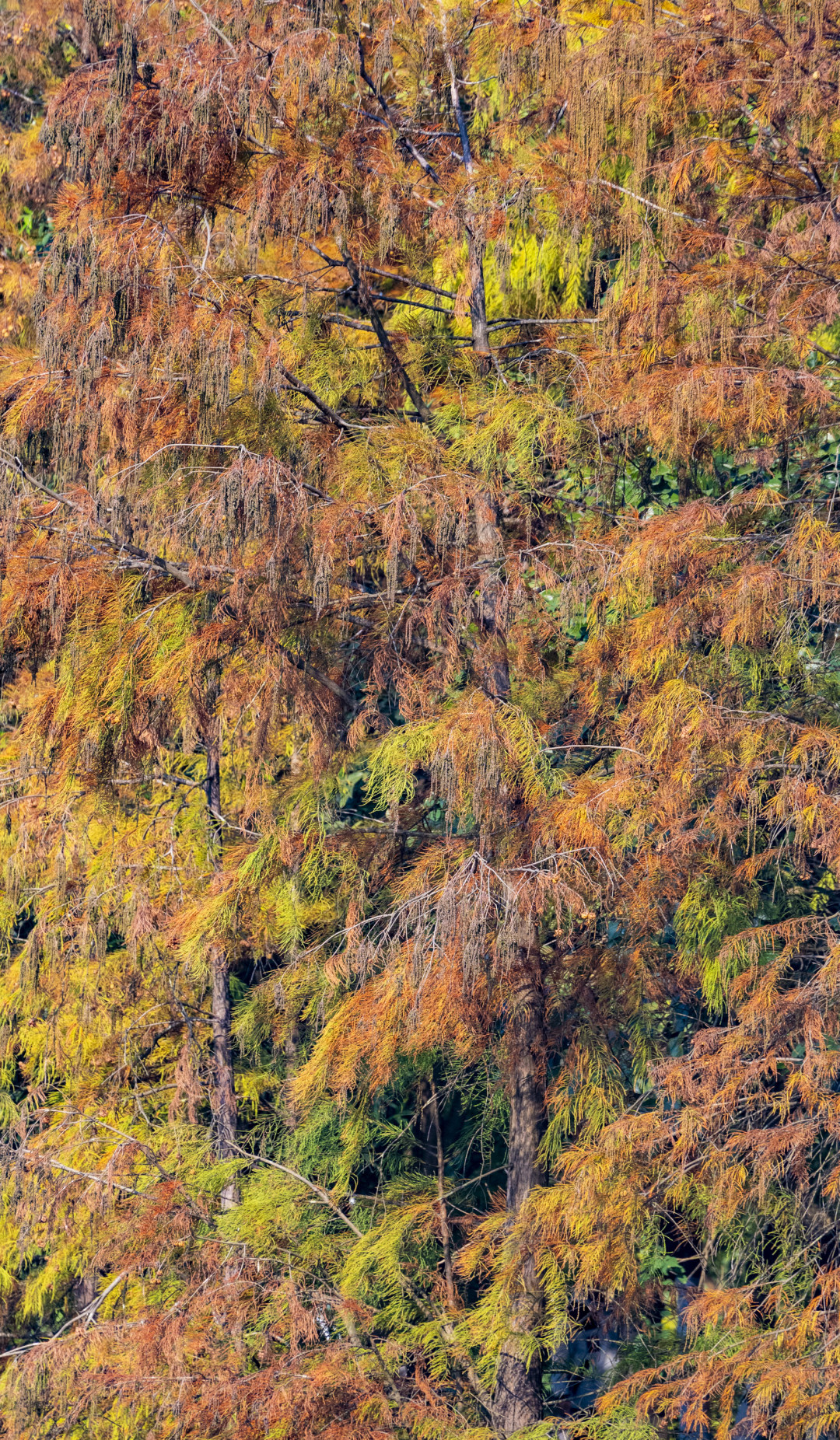 1月3日,二十四节气中的小寒将至,在广州番禺大夫山森林公园,昔日翠绿的落羽杉如今晕染成金黄、橙红与赭石色,层层渐变如打翻的调色盘。