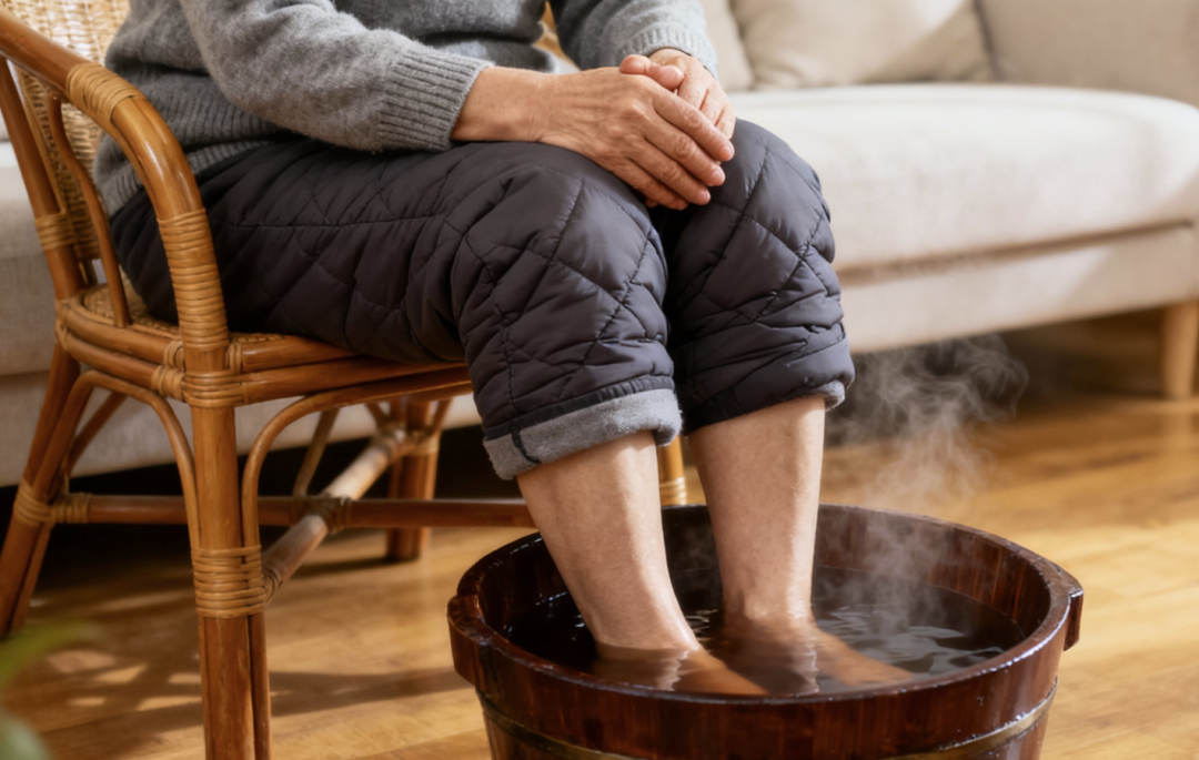 四肢怕冷的人建议泡足养生。(图片由AI生成)