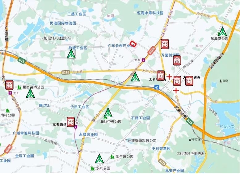 邻近的商业设施有太和金铂天地、万民广场、悦和方等,广州市白云区太和人民医院、太和镇卫生院等作为医疗配套,周边亦不乏太和城市公园、夏良农业公园、柏塘中心公园、海丝中央公园等公园景观。