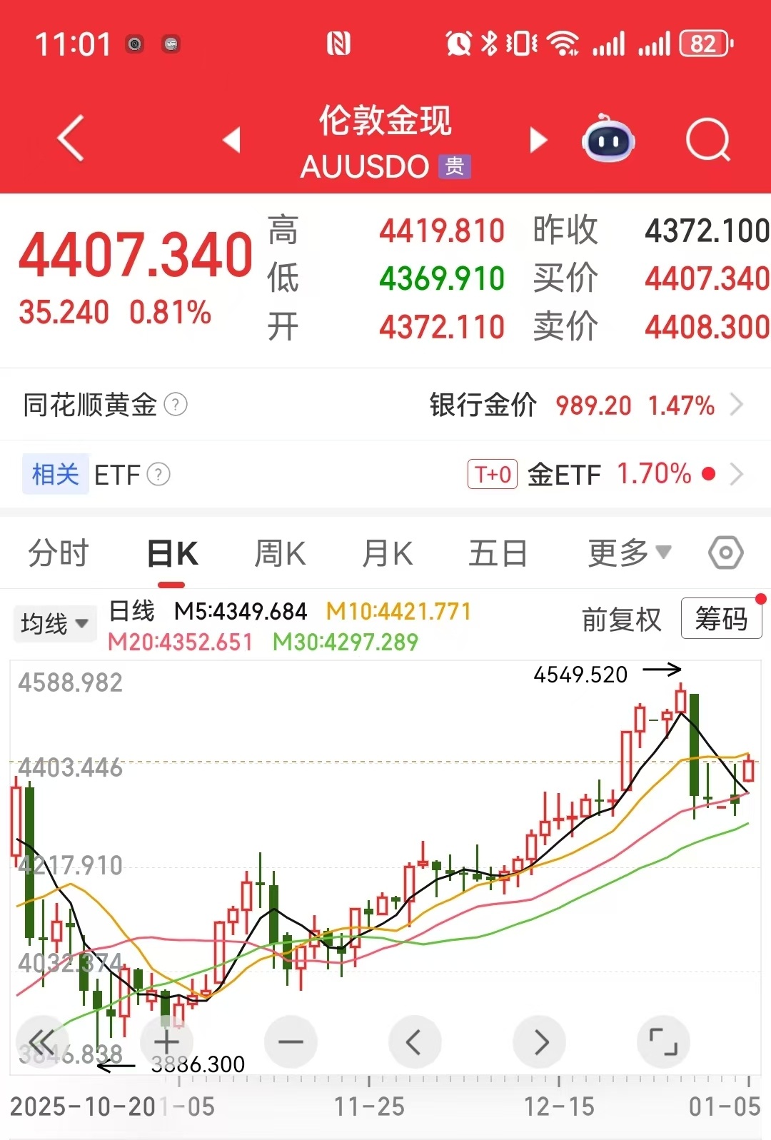 1月5日早盘,金银开盘直线拉升。截至11时02分,伦敦金现站上4400美元,高位报4419.81美元/盎司,日内涨幅0.81%,伦敦银现日内涨幅2.36%,COMEX黄金日内涨幅1.88%,COMEX白银涨幅5.73%。