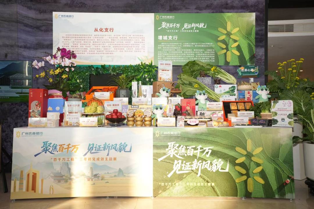 会议现场的“百千万工程”主题展区成为焦点,从化醇香浓郁的荔枝酒、番禺鲜甜饱满的蓝莓、增城脆嫩清甜的菜心......广东各地的特色农产品整齐陈列,这些正是广州农商银行以金融“活水”精准“滴灌”“百千万工程”的生动注脚。