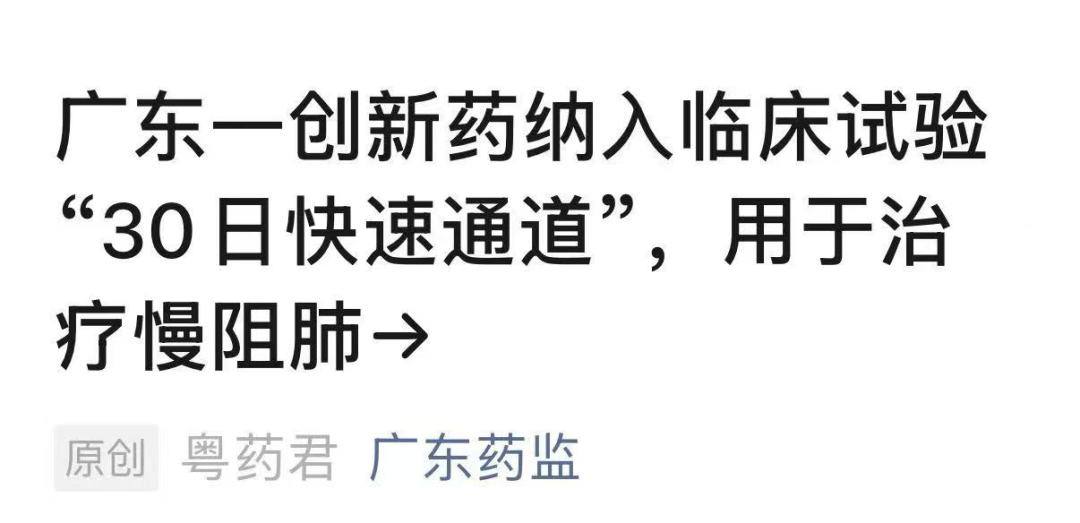 广东省药监局官方微信公众号发布消息称:近日,国家药监局受理了广州实验室与广州呼吸药物工程技术有限公司联合开发的治疗慢性阻塞性肺疾病的1类化学创新药GRA2405的临床试验申请,并将该品种纳入“优化创新药临床试验审评审批”通道,审评审批时限将由法定的60个工作日缩短为30个工作日。GRA2405是国务院《全链条支持创新药发展实施方案》支持的具有明显临床价值的重点创新药品种,也是广东省首个纳入该临床试验优先审评审批通道的创新药。