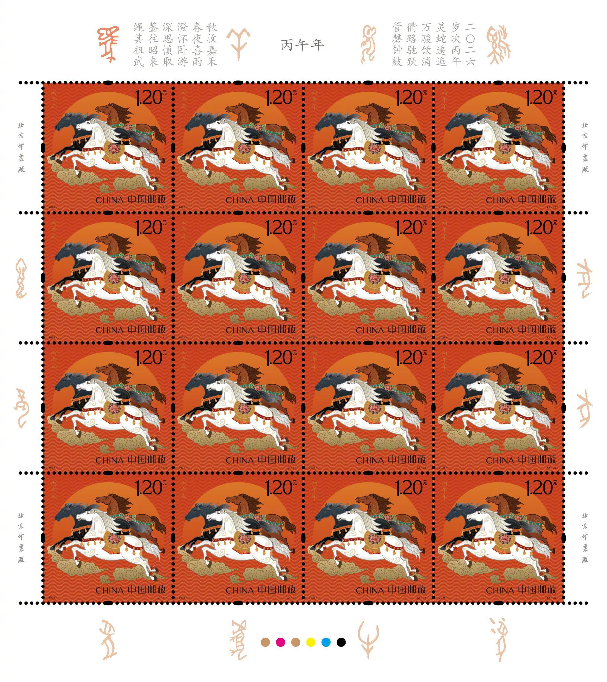 2026年《丙午年》特种邮票今日正式首发。一枚名为《驰跃宏图》,彰显力量;一枚名为《万骏臻福》,体现温情。整套邮票设计线条灵动,骏马姿态昂扬。