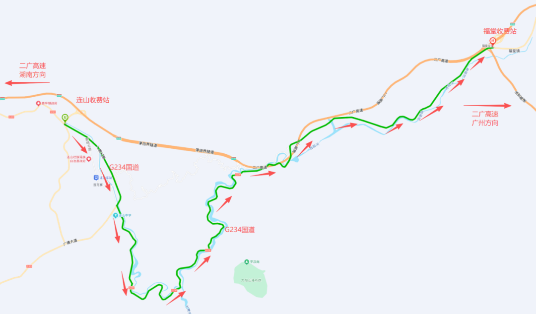 【二广高速广州方向连山至福堂段封闭施工,绕行路线公布】记者从广东交警获悉,因二广高速铜锣营至鹤塘互通立交段路面二期工程及交通安全设施改造工程施工需要,广东交通集团所属二广高速将对广州方向连山站至福堂站高速主线、连山收费站往广州方向匝道实施全封闭施工。查看详情>>