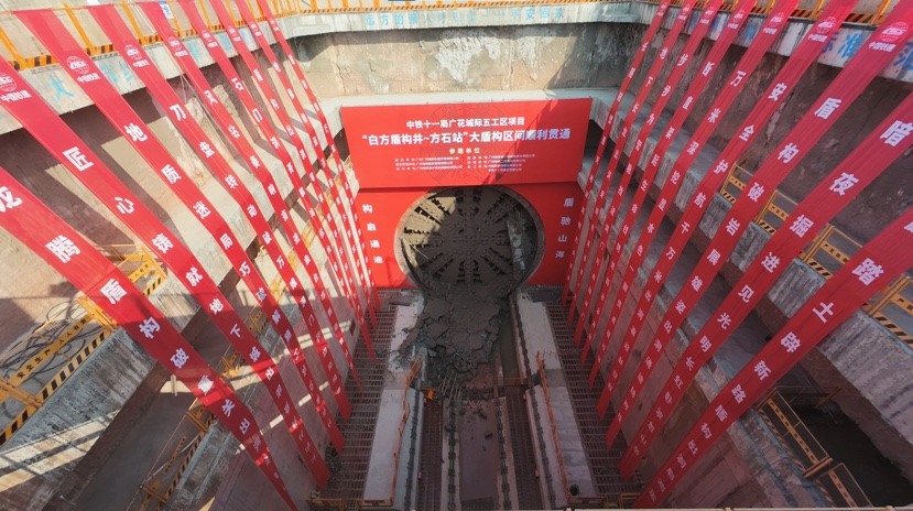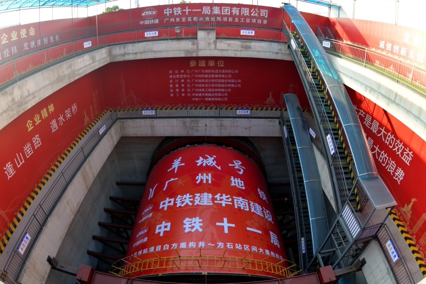 为应对复杂工况,广州地铁联合中铁建华南建设广花城际总承包部、中铁十一局的建设者们经过多次研讨,决定采用单洞双线的施工方案,选用了以广州命名的“羊城号”大直径盾构机实施作业。“羊城号”直径达13.56米,配备智能系统,具有开挖仓高精度压力平衡控制、大功率泥水环流及刀盘冲刷、超前地质预报等功能,能实现“一次掘进,风险减半”的工程目标。