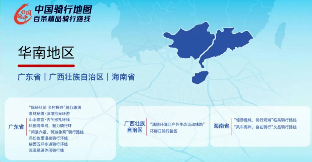 2025年中国骑行地图精品骑行路线出炉!广东有8条线路入选,数量与河北并列第一,紧随其后的是内蒙古、山西、河南、江苏、福建、贵州,均有5条精品骑行线路入选。
