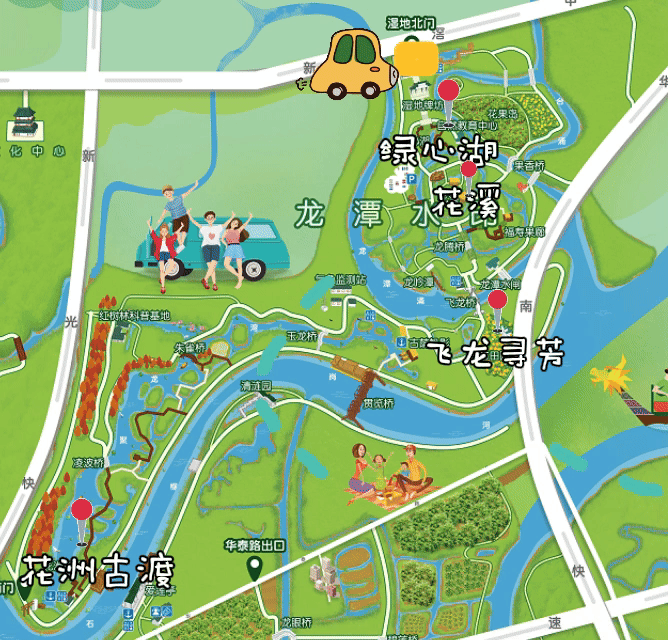 海珠湿地“芳径闲游线”这条环线从湿地一期北门开始,把绿心湖的澄澈、花溪的野趣、飞龙桥的花海、古渡口的旧时光串联起来。绿心湖,现代地标、岭南建筑与自然湿地同框,这种奇妙的碰撞,市区少有;花溪,是整条徒步线中最富童趣和野趣的一段;飞龙桥,桥的尽头藏着一片“飞龙寻芳”花海,这里堪称湿地里的“四季调色盘”;花洲古渡,是徒步的最后一站,这里的美在于一份恰到好处的“旧”意,安静又惬意。