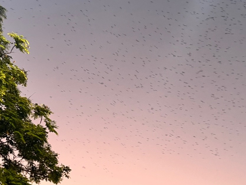 “快来了,天黑前的这半个小时,这些鸟一定会出现。”傍晚6时许,乐从风度广场附近的居民抬头望向天空,就会发现数万只飞鸟在上空聚集,一次次掠过附近公园、小区外围绿化带的树梢,冲向天空又再盘旋回来。广州日报记者在现场见到,附近摆卖的临街商贩早有准备,赶紧支起手推车顶部的遮阳伞。“一不小心鸟屎就会滴在你的头上。”商贩无奈地说。这时候附近一位妈妈正带着孩子在散步,鸟屎“精准”滴在妈妈头上,这位女士赶紧拿出纸巾,嫌弃地擦拭起头部。