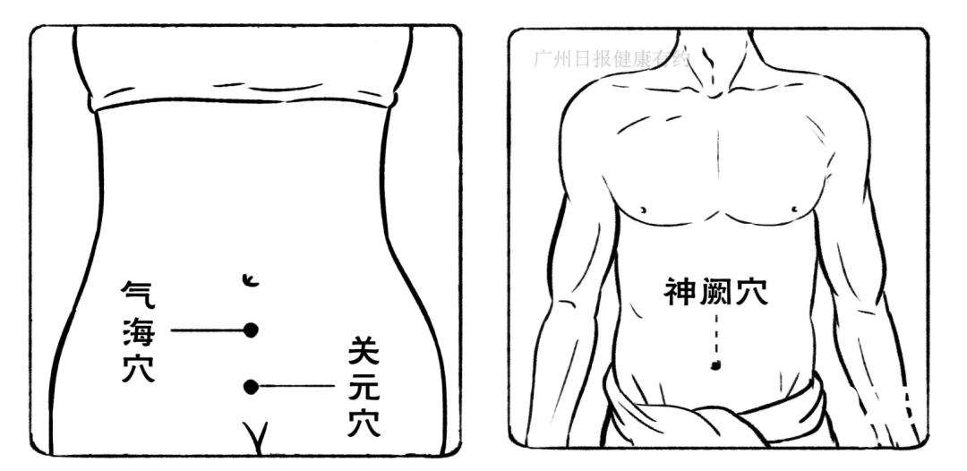 关元:位于下腹部,前正中线上,当脐中下3寸。取下腹部,正中线上,肚脐中央向下4横指处。