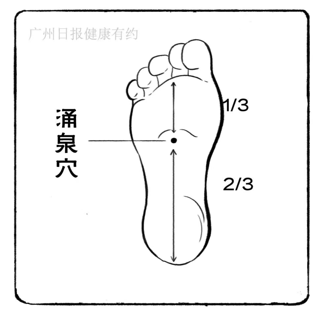 涌泉穴:在人体脚底前三分之一处正中凹陷下去的部位。