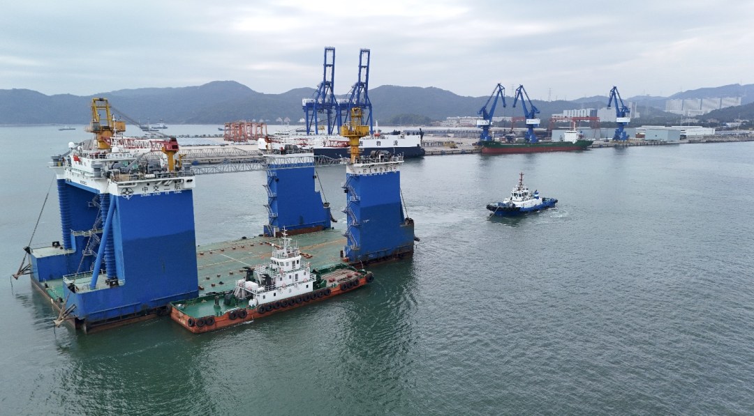 据悉,此次出运的沉箱长31.24米、宽23.3米、高12.8米,单体重达4280吨。作业区域为无遮挡开放水域,海况多变,且需历经陆上装船、海上拖带、精准下沉等多个关键环节,技术要求高、通航保障风险大,任何疏漏都可能影响整体安全。