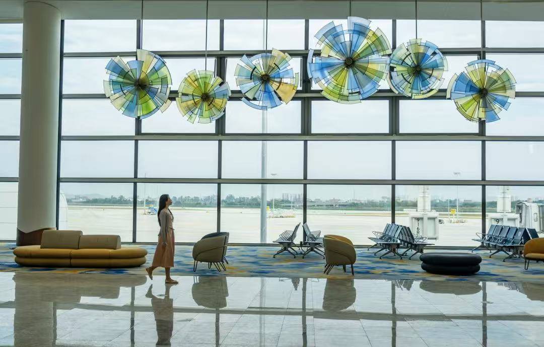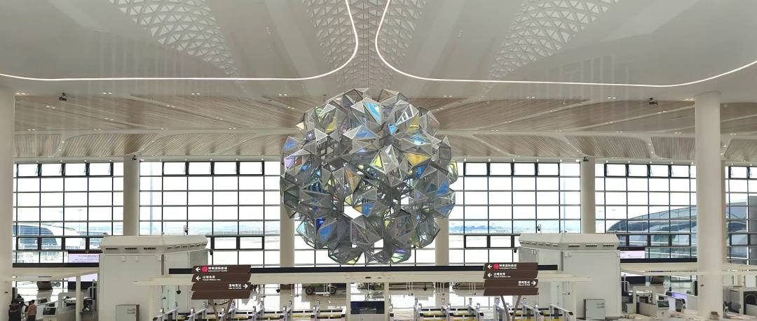 在这里,每一次出发与抵达,都不再只是行程的节点,而是一场融汇国际表达与岭南气韵的沉浸式艺术漫游。国际顶尖艺术家的匠心创作,让传统焕发新生;前沿科技的融入,让文化以动态可感的方式“活”在当下。机场建设者怀着对历史的尊重、对开放的追求、对未来的眺望,将这座航空新地标,打造成一个融合东方哲思与全球视野的“公共艺术生长系统”。在这里,国际审美与广府情调从容对话,在地文化与当代艺术交织。