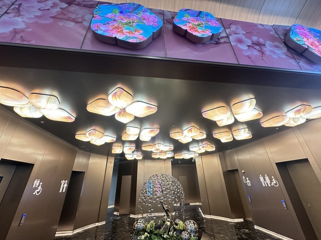 这颗直径6米、重达2.5吨的“星球”,凭借几乎隐形的航天级钛合金悬索,实现了气球般的视觉轻盈。表面特制的穿孔铝板覆以“纳米仿宣纸”涂层,使光线如岭南水墨般自然晕染。镶嵌的1200片智能玻璃随您的位置变换色彩,内部2048颗LED与自然光共舞——这正是埃利亚松多年来在多面体几何学研究的精粹,也是他艺术理念与中国文化精神的首次深度共鸣,科技与诗意在此完美融合。