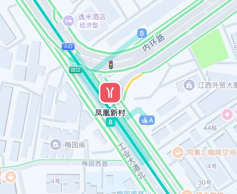 目前,凤凰新村站两个出入口都在工业大道东侧。新开通的D口位于工业大道北的西侧,附近分布有梅园阁、金沙花园、富力现代广场、银山尚橙、梅园西路小学等住宅区和学校。凤凰新村站D口开通后,车站告别“单边”出入口,市民日常通勤、上学的便捷性将进一步提升。