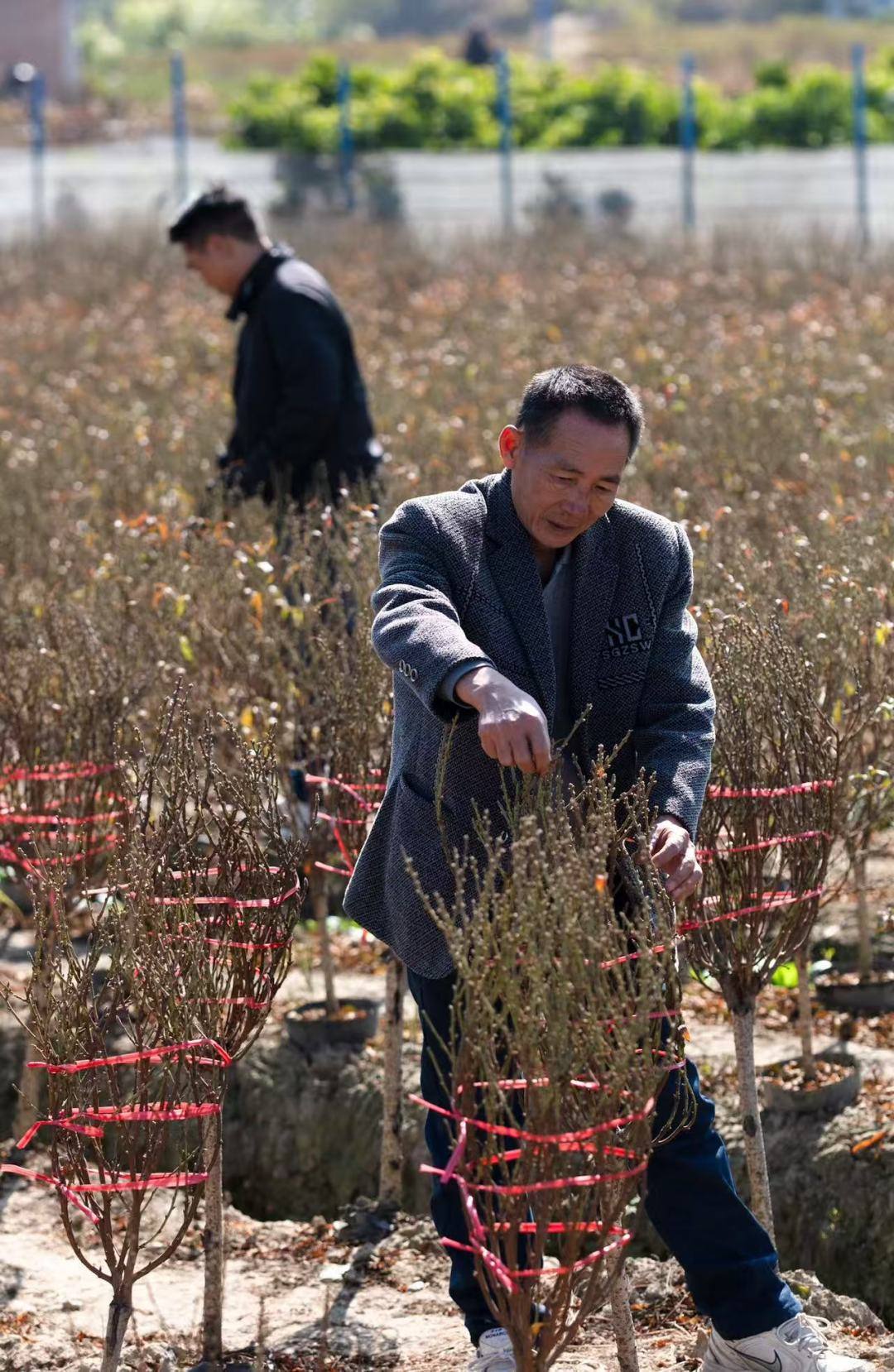 “今年的石马桃花会开得比去年还要靓!”花农黎曙亮是土生土长的石马村村民,跟着父辈学种桃花,至今已有40多年的种植经验。他告诉记者,“农历2025年闰了一个月,桃花的生长时间比往年长,养分就更充足,加上近期北风天多、雨水少,所以今年的石马桃花会开得特别靓,欢迎大家到石马的花田赏花、选购。”