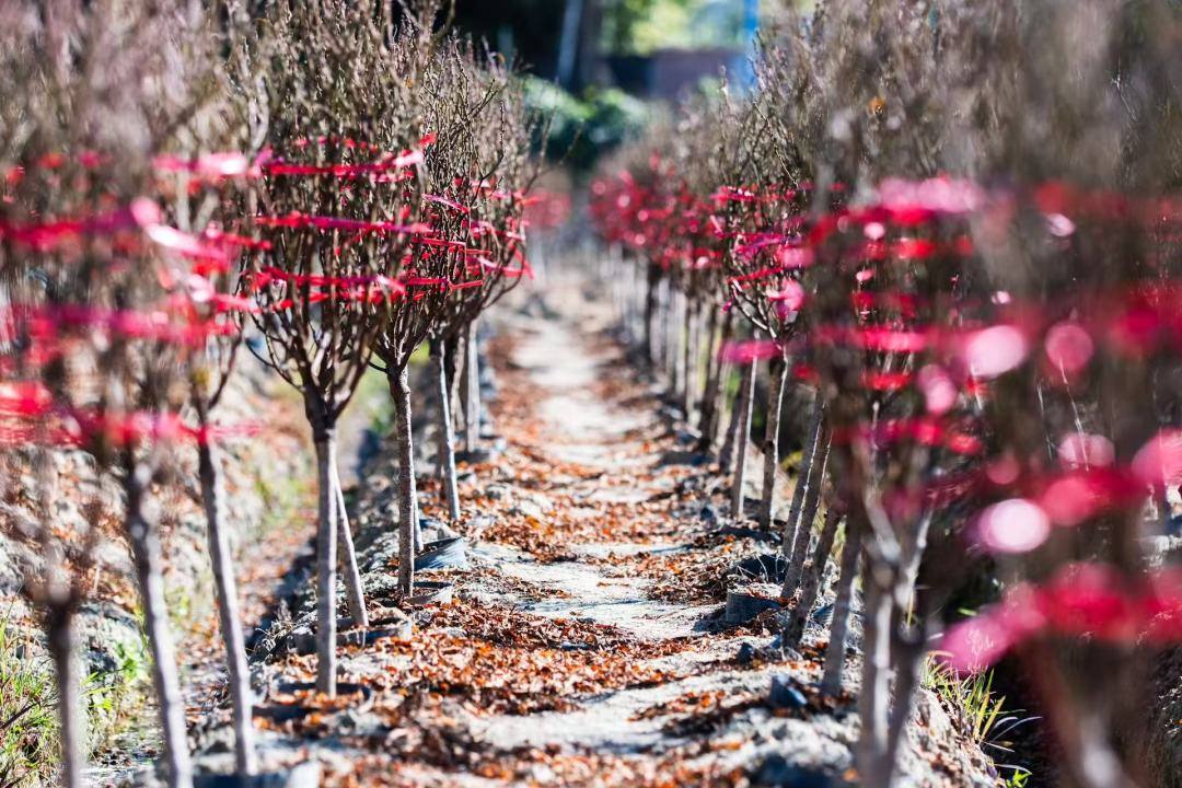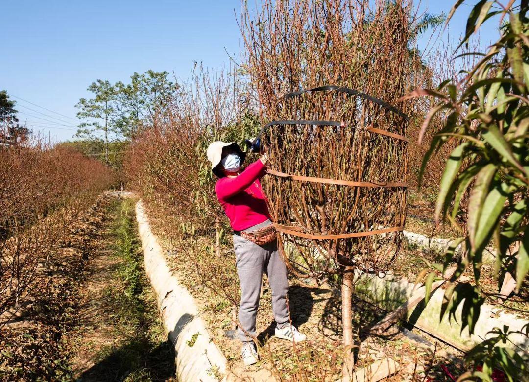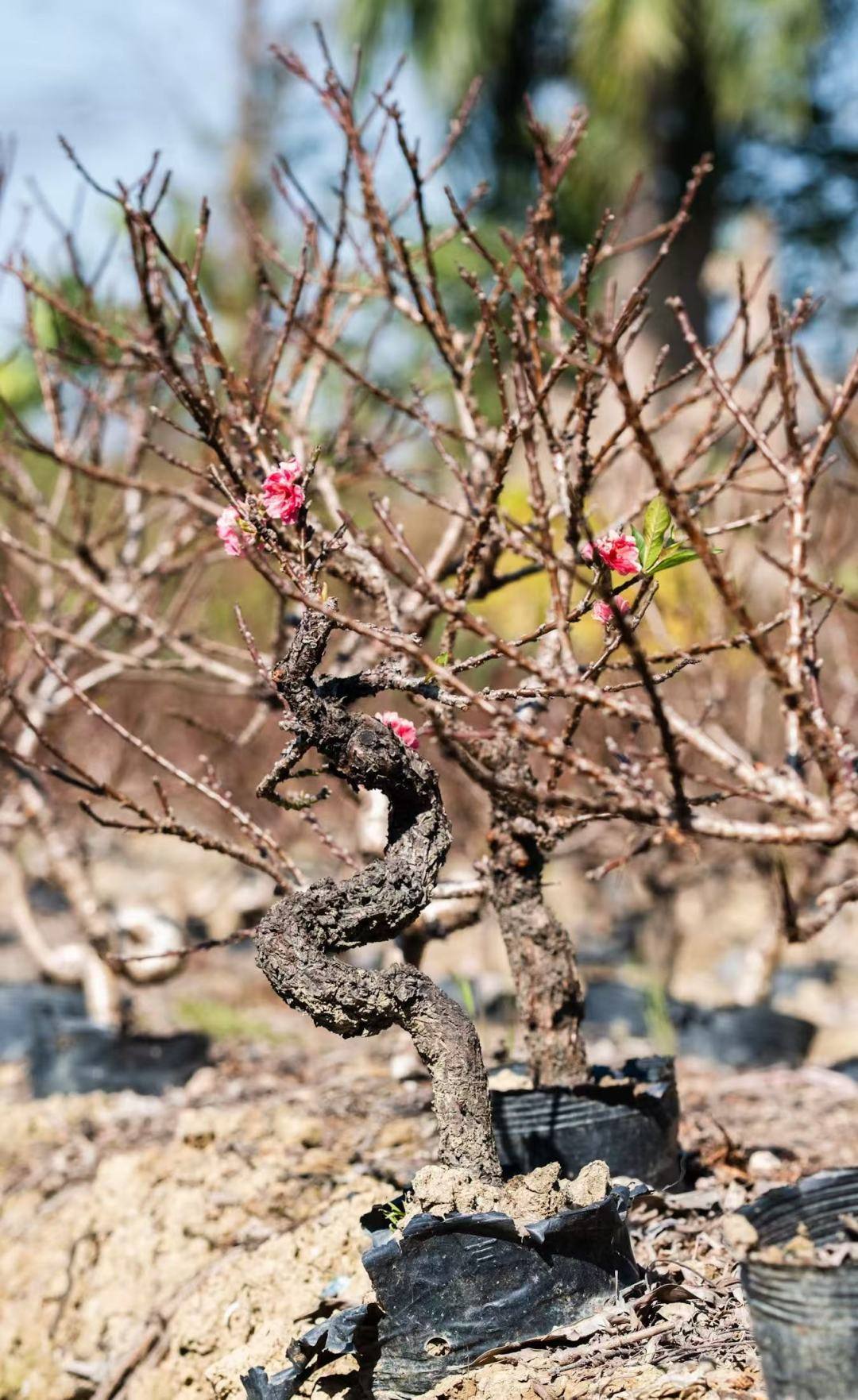 “我们今年种了2000多棵盆桃,盆桃更方便在面积有限的室内摆放,而且花期相对长些,现在已经有不少熟客约好来田里挑选。”黎凤影称,“很多人都喜欢老树盆桃,遒劲盘龙向上的造型。预计今年价格基本与往年持平,大概都是200元/盆至数千元/盆不等。”