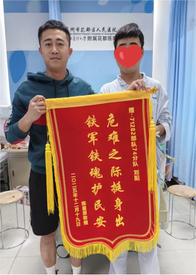 事后,被救男子为刘阳送上锦旗表示感谢。刘阳说:“这是我应该做的,不管穿没穿军装,军人的使命永远都在。”