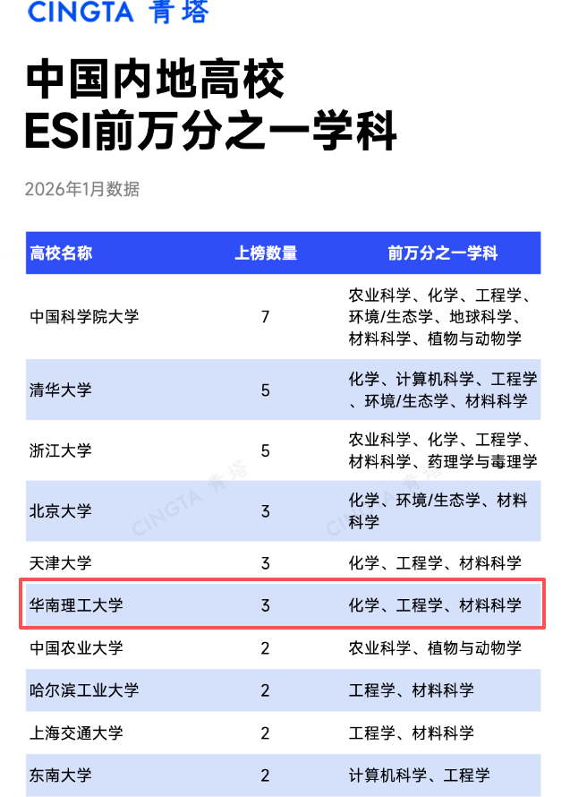据第三方统计,华南理工大学3个学科入选ESI万分之一,稳居内地高校并列第四位。