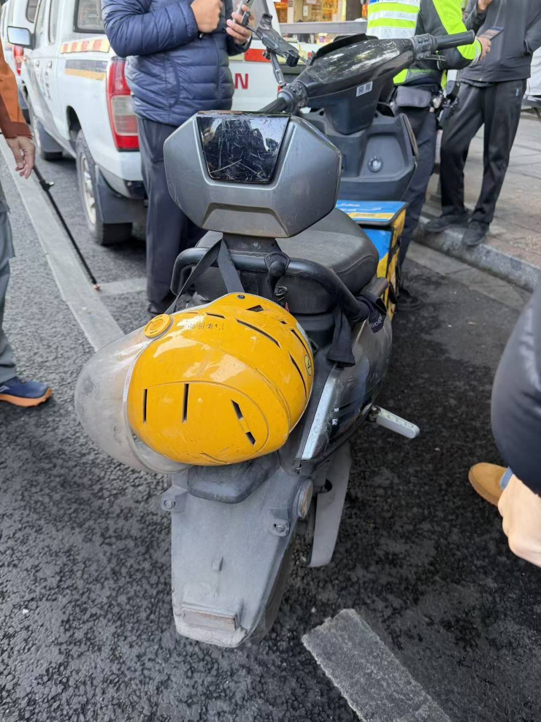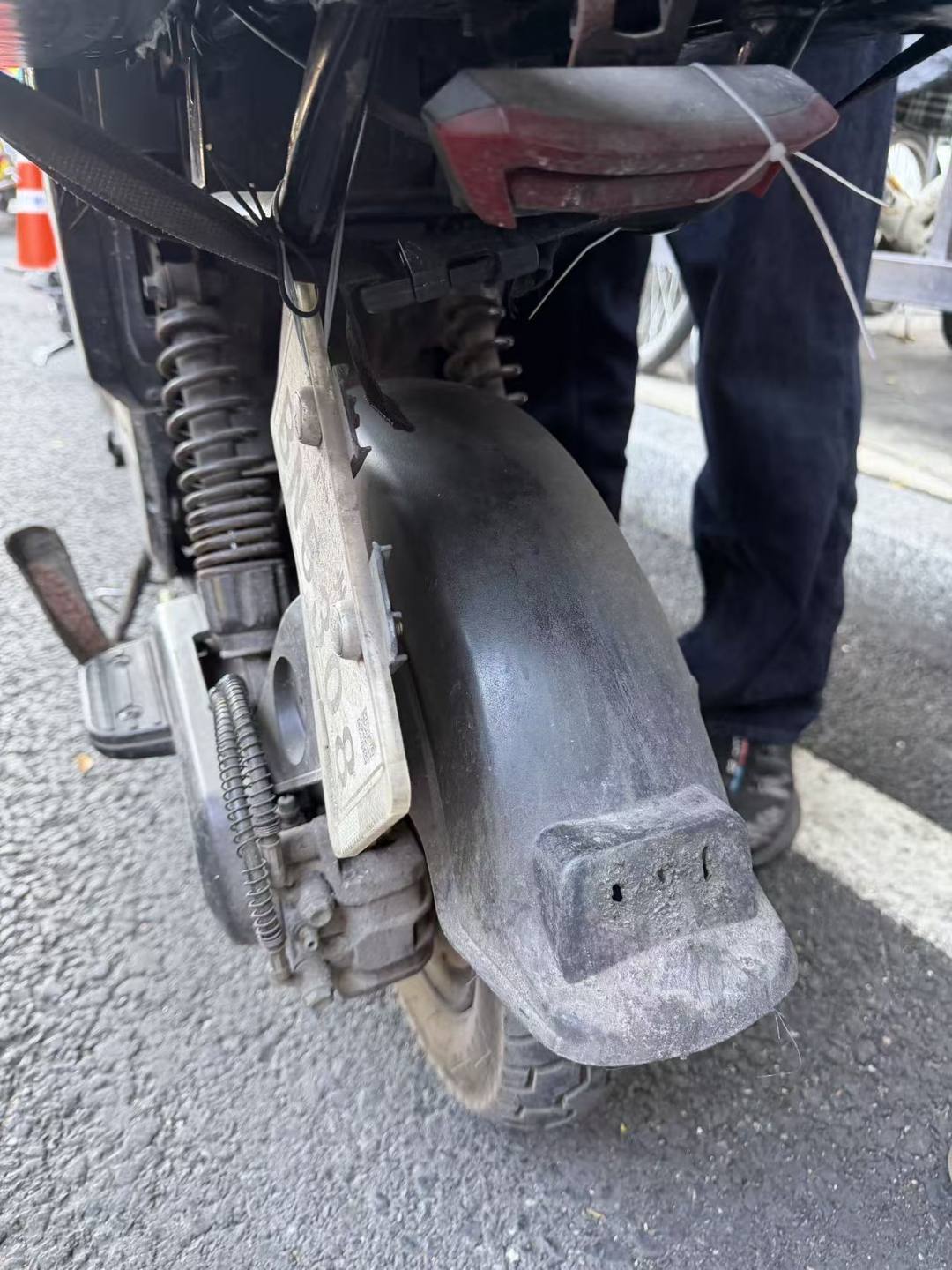 “这车是我一年多前买的,车牌之前断了,我用扎带绑在了车尾,不知道什么时候一边又断了成了现在这样。”上午10时许,在海珠区新港西路瑞康路路口附近的查车点,一名外卖小哥指着斜挂在电动自行车后轮一侧的号牌向执勤交警解释。
