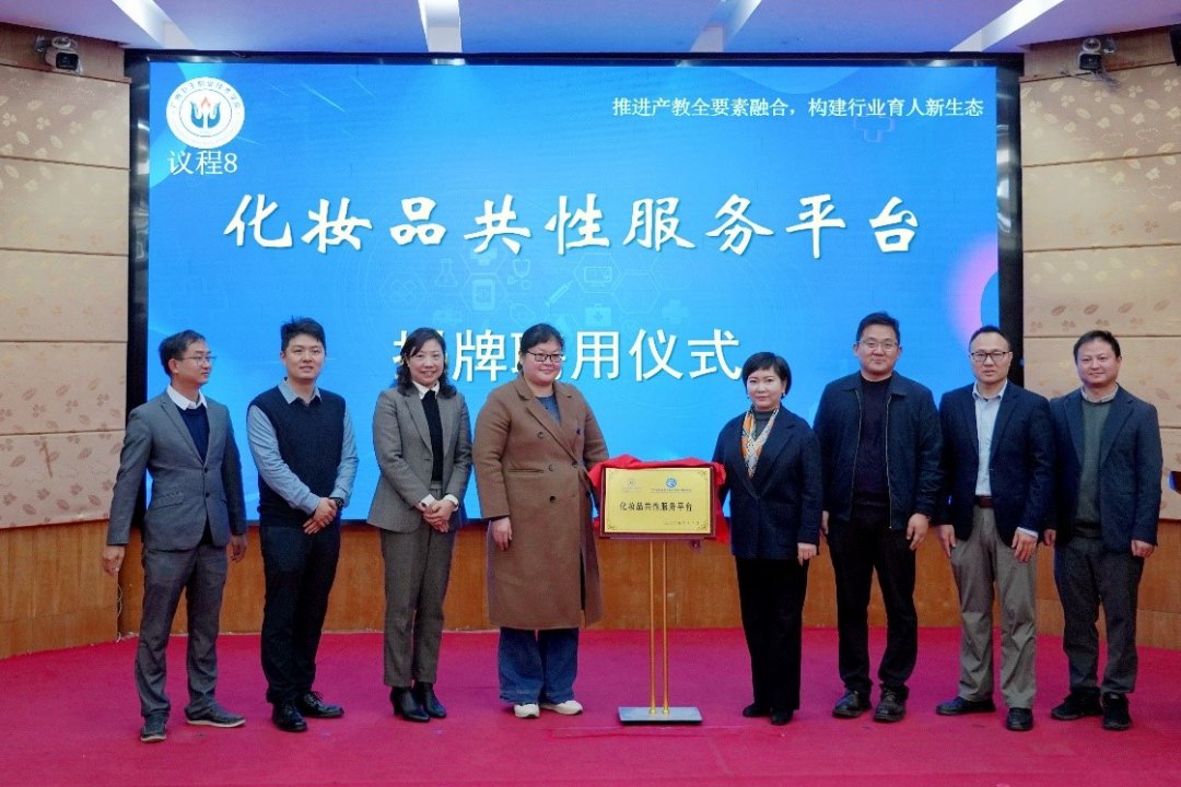 仪式上,与会领导嘉宾共同为化妆品共性服务平台、职业健康监护与检测AI工程技术研究中心、化妆品功效与评价中心、植萃生发与发肤健康协同创新中心四大平台揭牌,并为相关负责人颁发聘书。随后,与会领导嘉宾就平台资源共享、课程体系共建、技术攻关合作、学生实习就业等议题进行座谈交流。