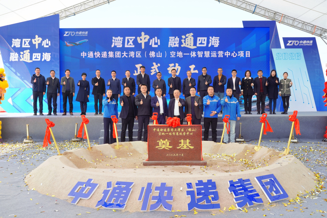 1月9日,中通快递集团大湾区(佛山)空地一体智慧运营中心在佛山市顺德区均安镇畅兴三期园区正式开工建设。记者了解到,该项目占地212亩,总投资达50亿元,是顺德区2026年首个动工的广东省重点建设项目,标志着中通快递集团在粤港澳大湾区的战略布局进入全面加速阶段。