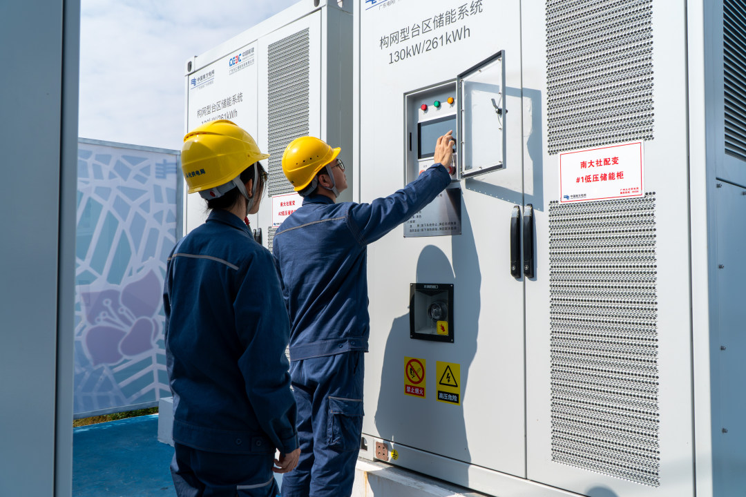 电力人员对桃莲微电网设备进行日常巡视检查。