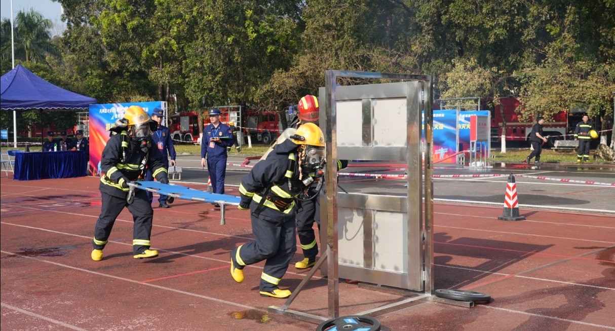 作为守护辖区安全的“前沿阵地”,微型消防站是实现“灭早、灭小、灭初期”火灾防控目标的关键力量。本次大赛紧扣实战需求设置手台机动泵出水灭火操、初战破拆救人操、电动车快速转移灭火操、室内消火栓出水灭火操等多个核心竞赛项目,全方位检验参赛队伍的应急处置能力与业务实操水平。赛事现场,金属装备碰撞声与指令呼应声交织,猎德街参赛队员精神抖擞、奋勇争先,每一个操作动作规范娴熟,每一次协同配合精准高效,在分秒必争的比拼中展现出日常训练的扎实功底,赢得现场阵阵掌声。