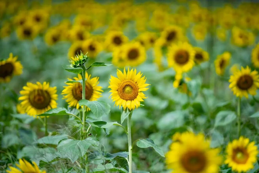 鲜亮夺目的金黄花瓣搭配饱满硕大的花盘,在翠绿枝叶的映衬下愈发灵动惹眼,每一处景致都透着生机与活力。