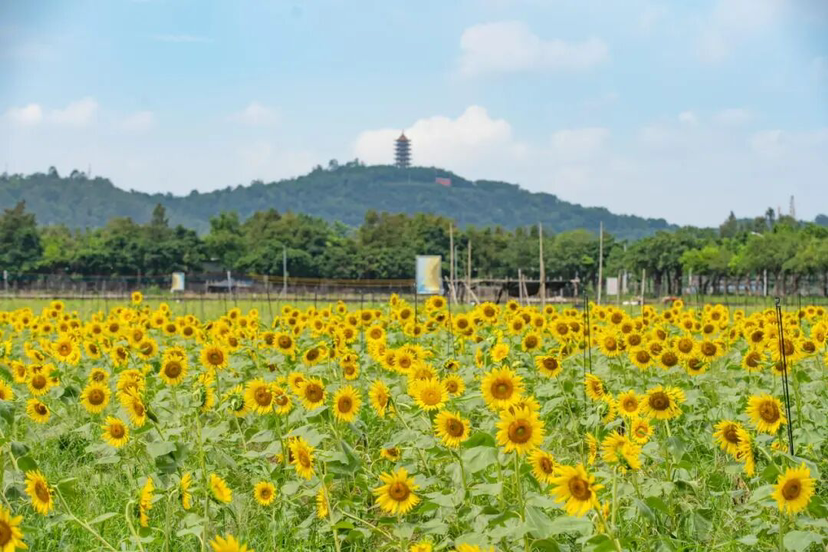 冬日暖阳下,葵花怒放。眼下,南沙区大岗镇东隆村隆生围的向日葵花海已然绚烂绽放,连片金色花田铺满田野,成为街坊邻里间新晋网红打卡地,吸引众多市民慕名前来拍照定格美好,在冬日时光里邂逅温暖与治愈。这片花海毗邻十八罗汉山,游客赏完金黄葵海还可以登山远眺,收获两份美好。