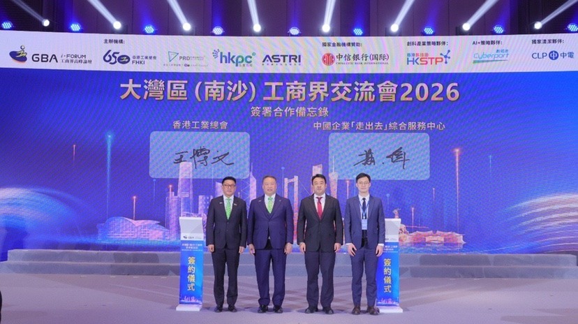 一年一度的工商界盛事——“大湾区(南沙)工商界高峰论坛及交流会2026”移师南沙,活动由香港工业总会(工总)、工总辖下珠三角工业协会(珠三角工业协会)、香港生产力促进局(生产力局)及香港应用科技研究院(应科院)联合主办,以“凝聚香港国际优势 助力湾区内外联通”为主题,云集近千名粤港两地政府、产业、学术、研究和投资界的翘楚,旨在促进两地沟通和跨界别合作,凝聚各界力量共同推动粤港澳大湾区新型工业发展,挖掘企业拼船出海机遇,建设全球领先的产业集群。
