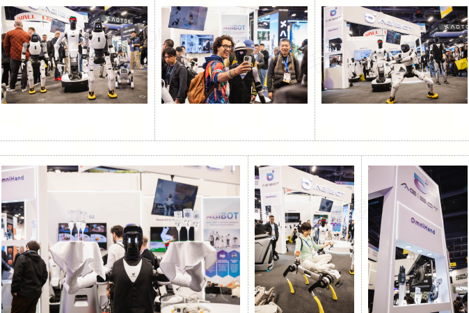 智元远征A2在现场熟练运用多个语种实现流畅交互,现场化身牛仔带来热舞表演;智元灵犀X2在CES现场展示舞蹈、太极与灵动交互,以科技美学诠释中国文化韵味,引得现场观众连连称赞;智元精灵G2融合交互智能与高精度力控作业能力,当场化身酒店侍应生,优雅地为到场观众递上饮料;智元酷拓D1系列四足机器人也在CES现场亮相,产品搭载RL强化学习运控算法,负载及续航能力强,适用于复杂地形下的巡检与作业任务,不少观众亲自“上身”,体验D1 Maxpro强大的载重能力。除机器人本体外,现场还展示了智元OmniHand灵巧手系列产品。作为精细化任务的执行终端,智元OmniHand灵巧手凭借其高度灵活的关节设计与先进的感知系统,为机器人赋予了接近人手的精细操作与自适应能力,与机器人产品共同构成了从运动、交互到作业的全栈生态。