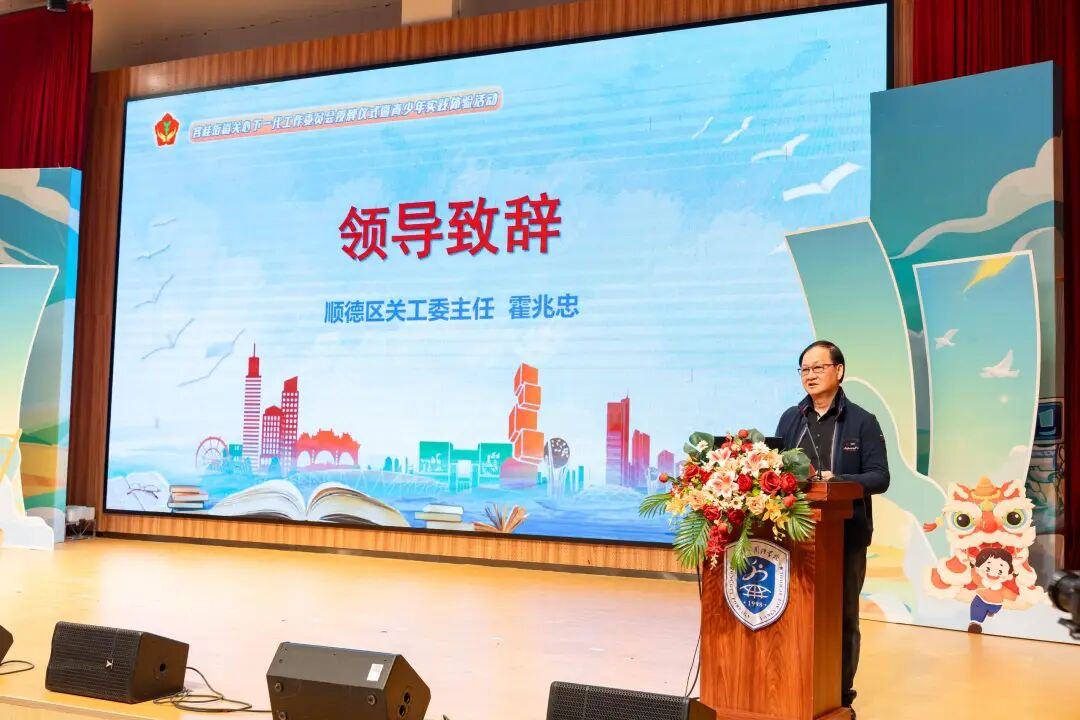 顺德区关工委主任霍兆忠在致辞中,充分肯定容桂街道先行先试、开拓新局的扎实举措。他指出,此次为“两新”组织集中授牌、为百人讲师团颁发聘书,是容桂推动关工力量向新兴领域延伸、充实专业智库的关键一步,有效链接了企业资源与社区氛围。他赞许了现场同步开展的青少年文化、科技、非遗体验活动,认为容桂作为文脉之地与制造重镇,将丰富资源转化为实践课堂,是“寓教于乐、实践育人”理念的生动体现,创意十足且值得推广。