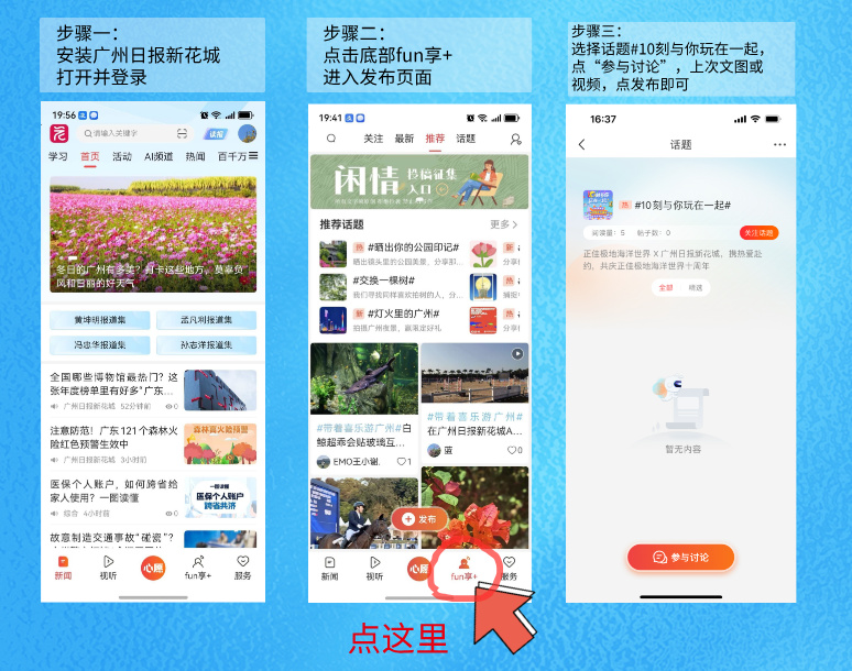 广州日报新花城客户端用户可无限次参与fun享+话题发帖活动,每个实名用户仅可中奖壹次(同一实名用户多次发帖也不重复中奖,活动解释权归主办方所有。)